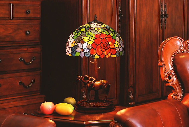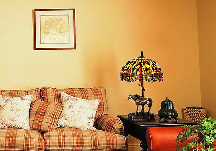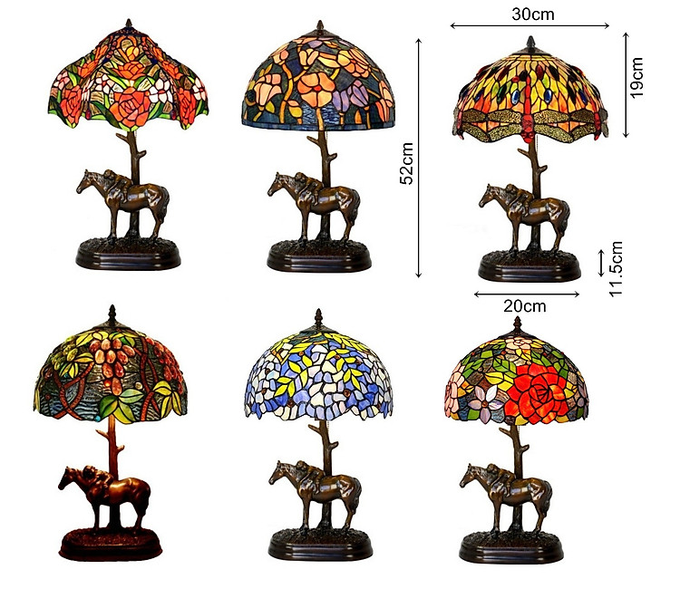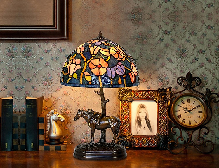Đèn bàn trang trí Tiffany chao đường kính 30cm chân chú ngựa đồng cao cấp