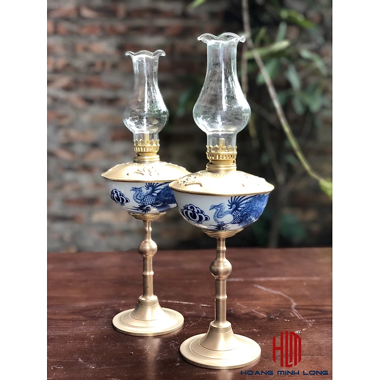 Đèn Bát Phượng Xanh Men Rạn Đắp Nổi