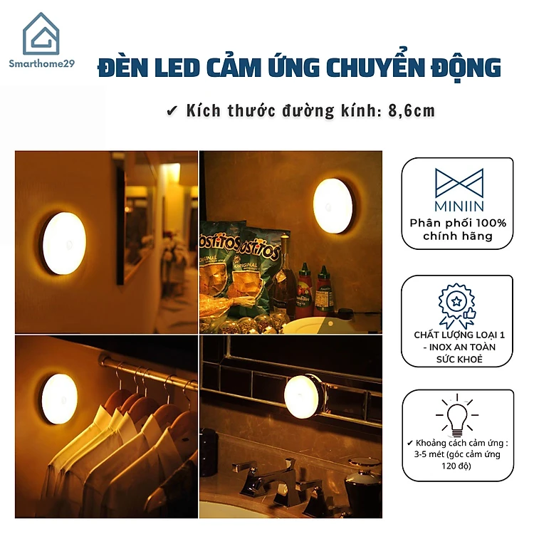 Đèn Cảm Ứng Chuyển Động, Đèn Led Thông Minh Dán Tường Không Dây, Góc Cảm Ứng Rộng, Thích Hợp Cho Mọi Không Gian - HÀNG CHÍNH HÃNG MINIIN