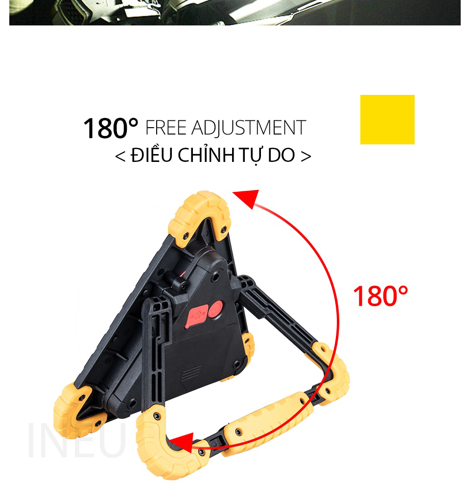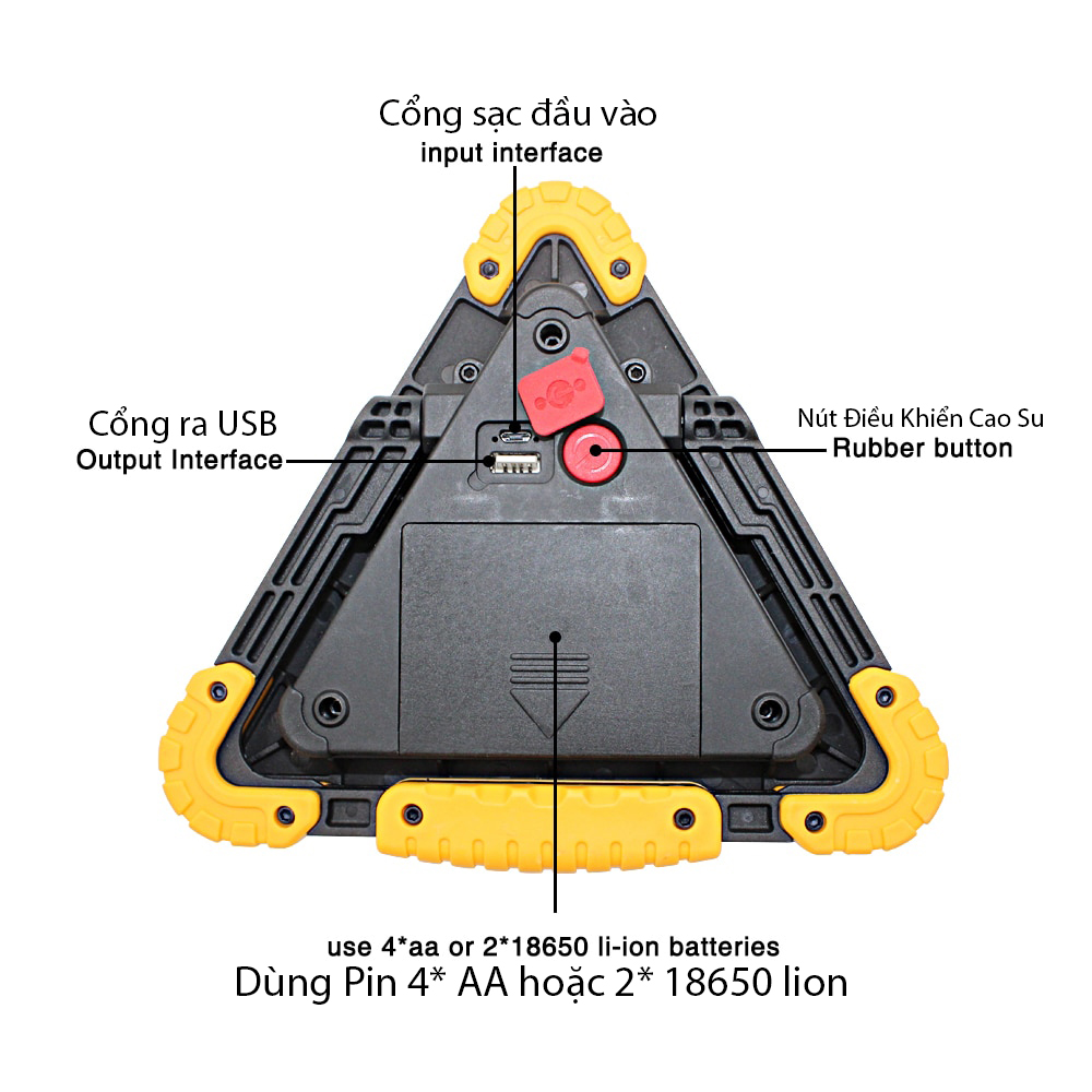 Đèn sử dụng thiết kế hình tam giác chống va đập, chống trơn trượt – với chất liệu cao cấp từ hợp kim nhôm và nhựa ABS giúp tăng độ bền của Đèn
