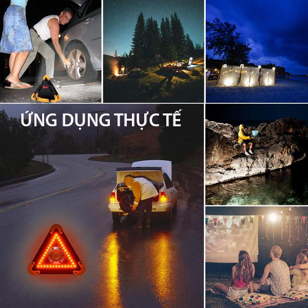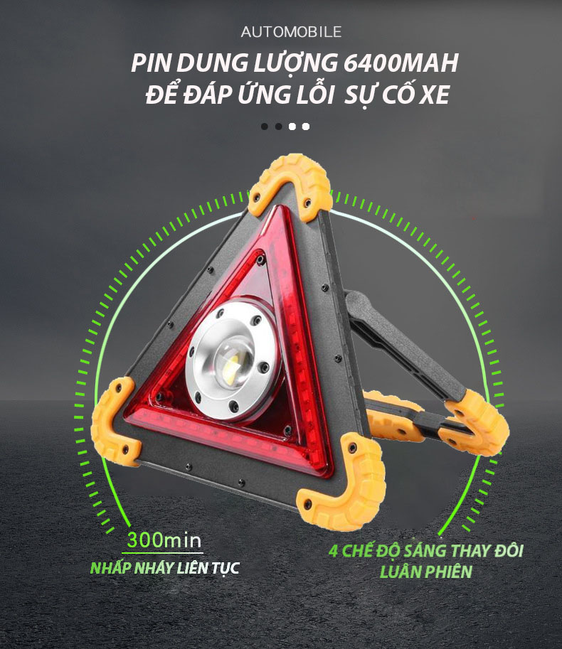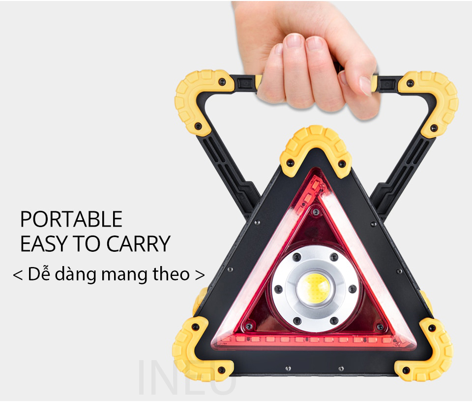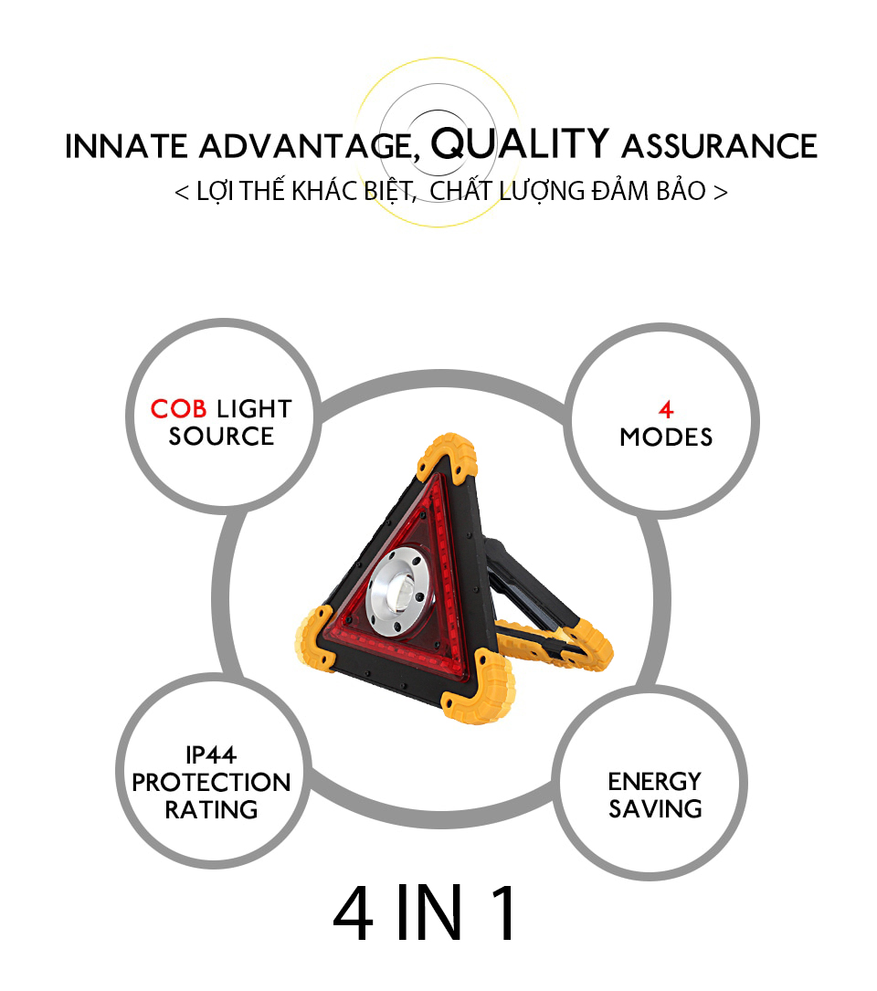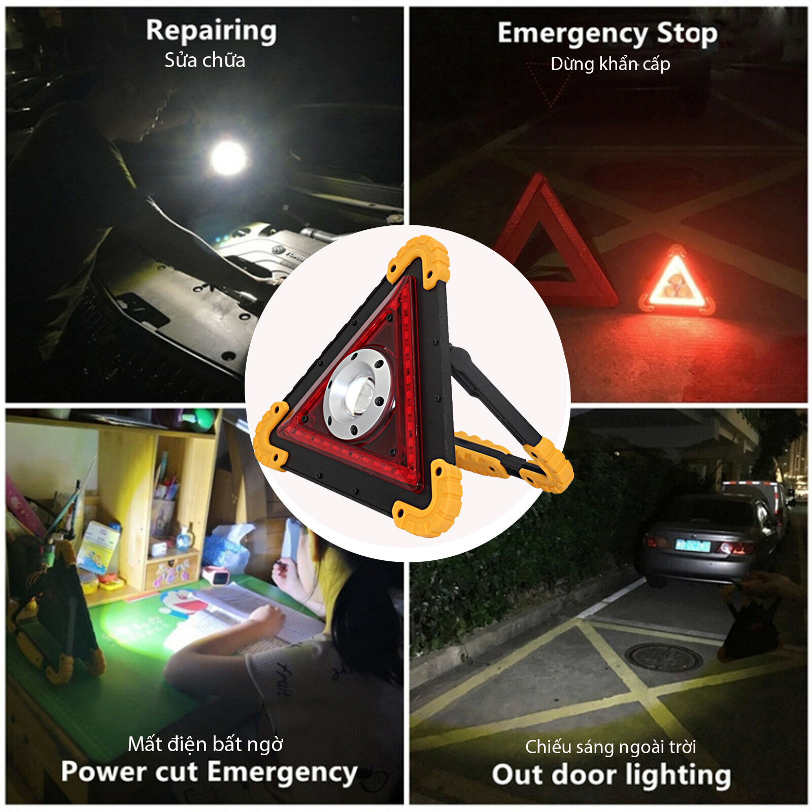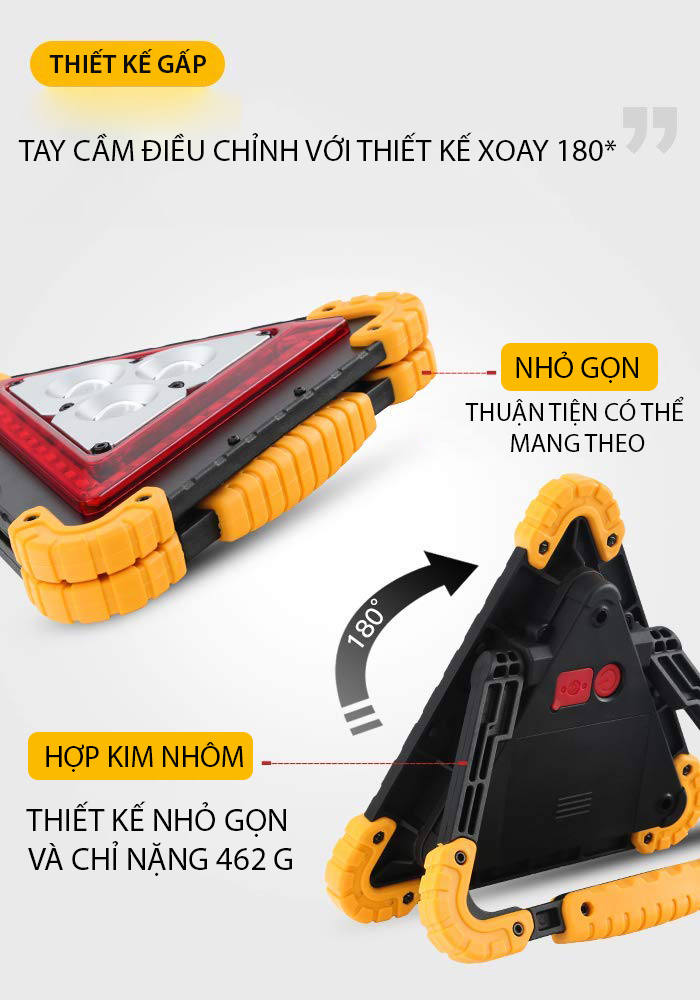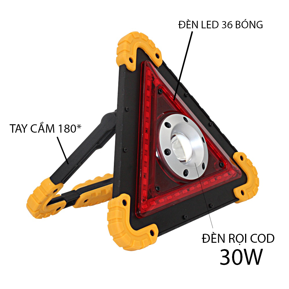 Đèn thiết kế với 1 bóng COB trung tâm và 36 bóng LED đỏ xung quanh giúp ánh sáng lan tỏa đều cho cả vùng ánh sáng rộng – thiết kế tam giác bắt mắt giúp người khác dễ phát hiện ra điểm cảnh báo hoặc sự cố……