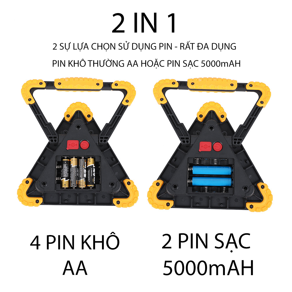 PIN đa dụng : Có thể sử dụng 2 pin sạc 18.000mAH hoặc 4 pin khô AA . Thiết kế này cho phép sạc trực tiếp khi có nguồn cấp như ô tô, máy phát hoặc ổ cắm hoặc không có nguồn cấp