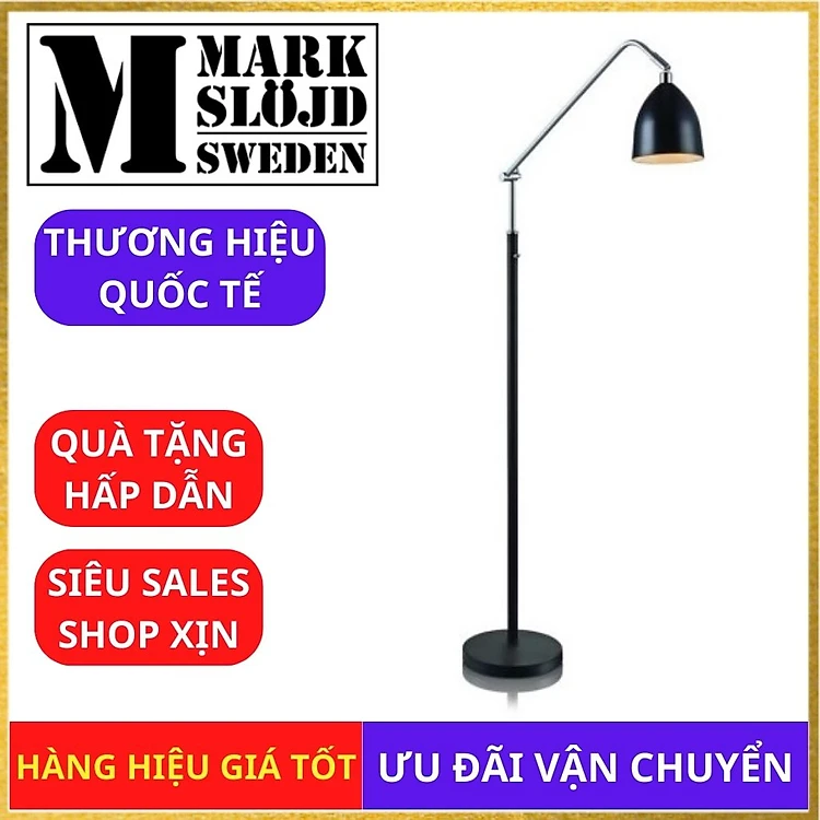 Đèn cây đứng, đèn sàn, đèn trang trí phòng khách, đèn ngủ Markslojd Fredrikshamn, màu đen, hàng chính hãng