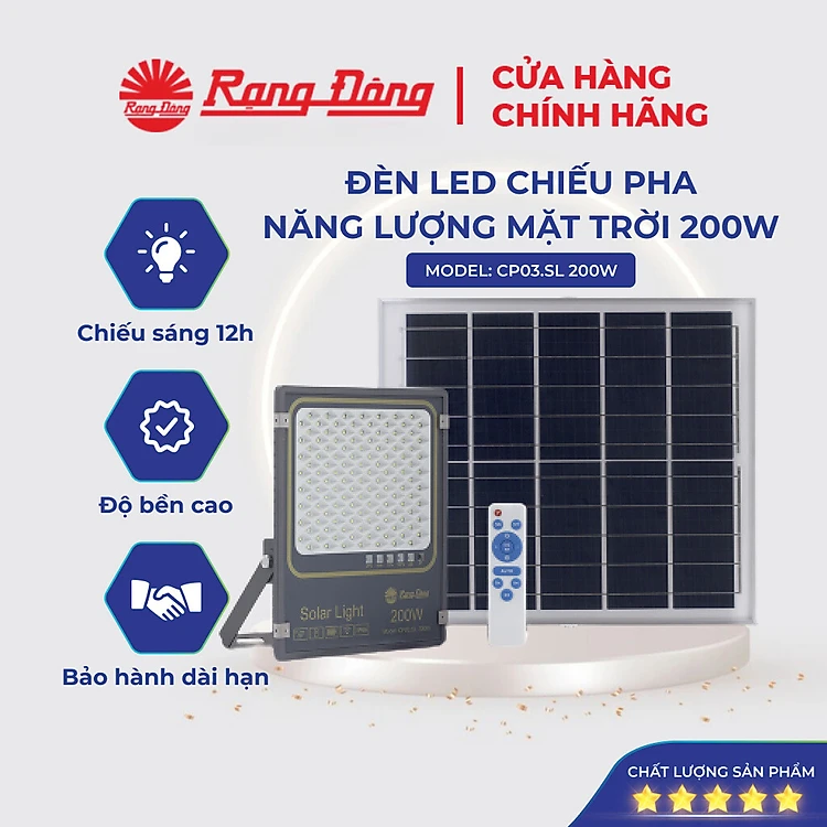 Đèn chiếu pha năng lượng mặt trời Rạng Đông 200W thế hệ mới Model: CP03.SL.RAD 200W.V2