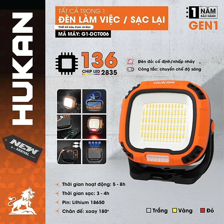 ĐÈN CHIẾU SÁNG TÍCH ĐIỆN G1-DCT006 HUKAN -HÀNG CHÍNH HÃNG