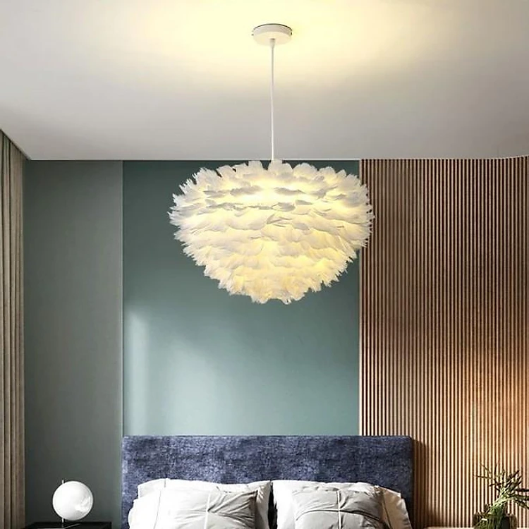 Đèn chùm LUISTE lông vũ hiện đại, sang trọng loại 60cm với 3 chế độ ánh sáng - kèm bóng LED chuyên dụng