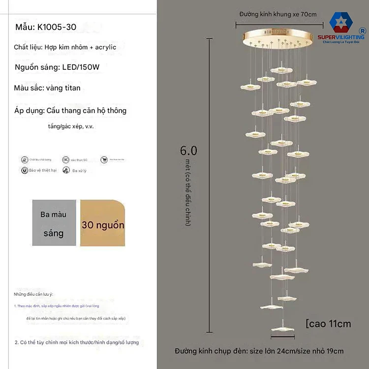 Đèn chùm thông tầng lá sen SuperVilighting trang trí phòng khách cầu thang kiểu đèn chùm thả trần