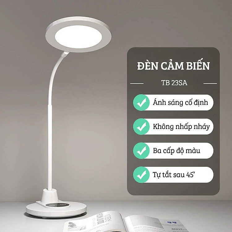 Đèn Bàn Học Cảm Biến FEIDASH TB23S - Điều Chỉnh Chiếu Sáng Đa Hướng - Hệ Số Hoàn Màu Cao Giúp Ánh Sáng Dịu Nhẹ Không Gây Hại Mắt - Nút Điều Khiển Trực Quan, Dễ Sử Dụng - Có Chế Độ Hẹn Giờ Tắt Đèn Vô Cùng Tiện Lợi - Hàng chính hãng