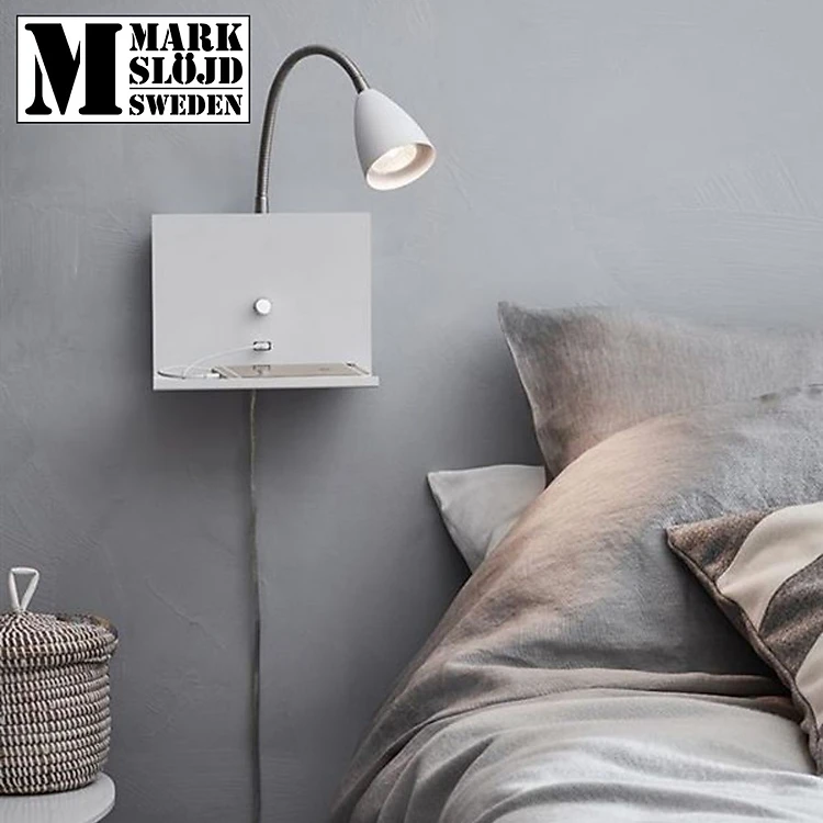 Đèn gắn tường đọc sách Logi Markslojd, màu trắng, tích hợp công tắc chỉnh sáng và cổng sạc Micro usb - hàng chính hãng