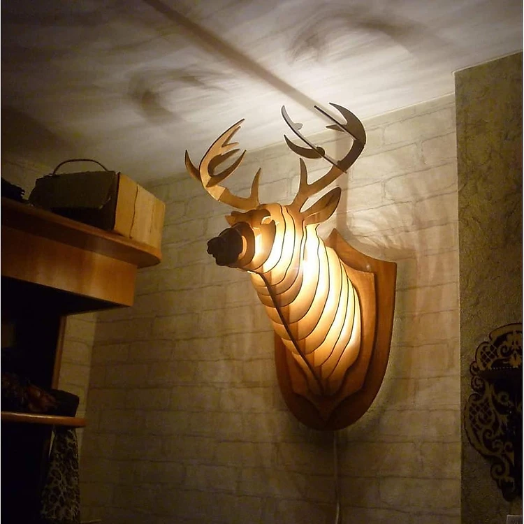 Đèn gỗ đầu hươu treo tường được chế tác từ gỗ sồi trắng nhập khẩu đã qua quá trình xử lý nghiêm ngặt từ nước ngoài, màu sắc và đường vân gỗ được lựa chọn kỹ và phù hợp nhằm nâng cao tính mỹ nghệ và phong cách sang trọng cũng như khả năng tạo hiệu ứng ánh sáng lan tỏa ra khu vực xung quanh cho tim đèn. Các thành phần cấu tạo nên đèn gỗ trang trí đầu hươu được phủ các lớp sơn chuyên dụng đặc biệt để tăng tuổi thọ, độ bền, đồng thời giúp đèn gỗ handmade đầu hươu chống mối mọt, ẩm mốc và thấm nước theo thời gian. Đèn gỗ trang trí đầu hươu được chế tác bằng công nghệ laser mới nhất và lắp ráp thủ công nên đảm bảo tính tỉ mỉ và đường nét sắc sảo, trọng lượng đèn được thiết kế thích ứng với các giá đỡ, trần nhà hay vách tường.