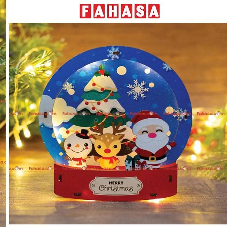 Đèn Gỗ Trang Trí Giáng Sinh - Bách Mộc - Quả Cầu Tuyết Màu Xanh