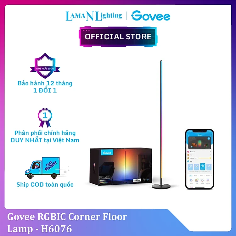 Đèn LED trang trí góc tường Govee RGBIC Corner Floor Lamp H6076 | Thiết kế tối giản, kết nối thông minh, 16 triệu màu RGBIC | Hàng chính hãng