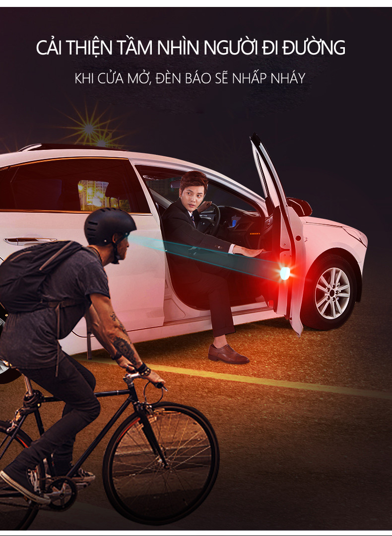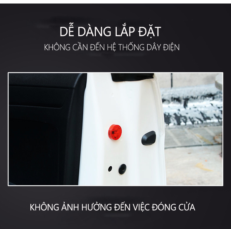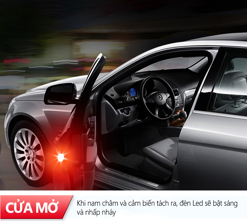 - Sử dụng pin và hệ thống cảm biến cực nhạy giúp đèn ngay lập tức phát sáng khi cửa xe ô tô của bạn bật mở. Ánh sáng màu đỏ mạnh chớp nháy liên tục dễ dàng giúp cho các xe chạy đằng sau hay kề bên nhận ra ngay-lập-tức, giúp giảm thiểu đáng kể các trường hợp nguy hiểm xảy ra, đặc biệt là trong đêm tối.