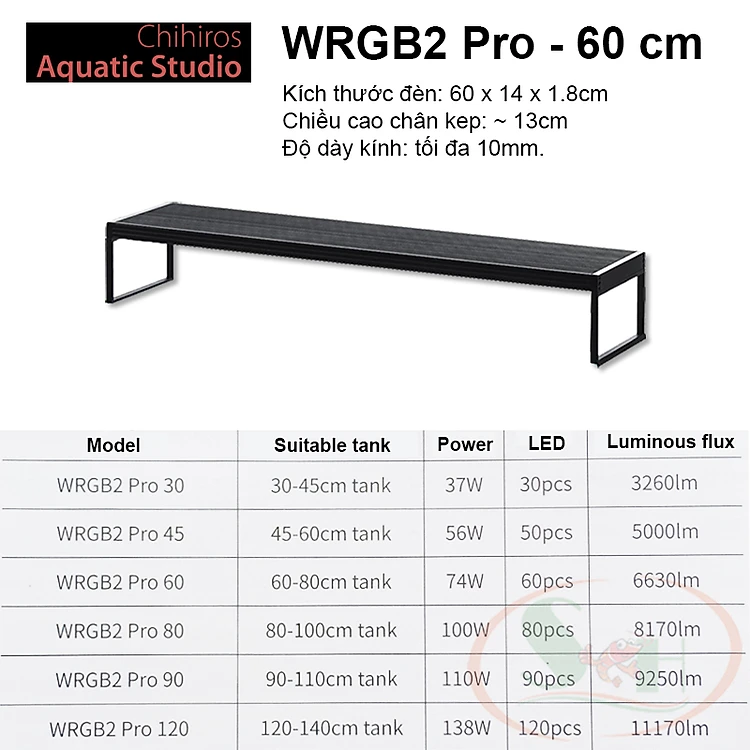 Đèn led Chihiros WRGB 2 Pro 30, 45, 60, 80, 90, 120 cm wrgb2 quang phổ trồng cây bể thủy sinh cá tép
