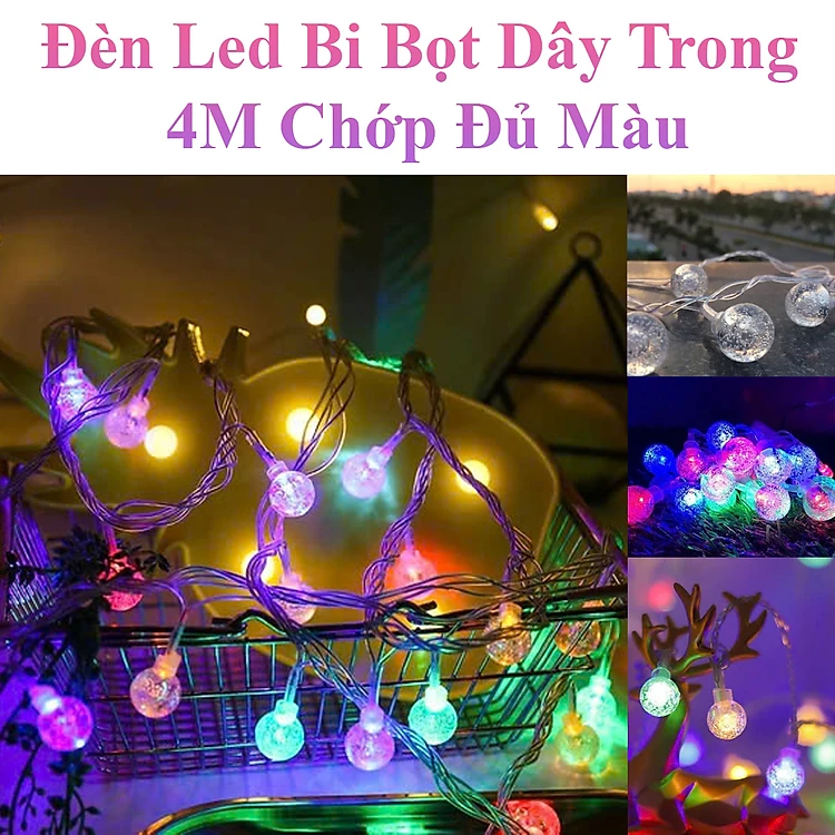 Đèn Led Chớp Hình Bi Bọt Dây 4M Chớp Đủ Màu