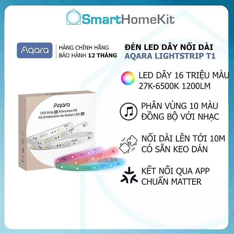 Đèn Led dây Aqara Light Strip T1 RGB Matter Starter & Extension Pack Gradient Effects, Supports Apple Home and Alexa Bản Quốc Tế
