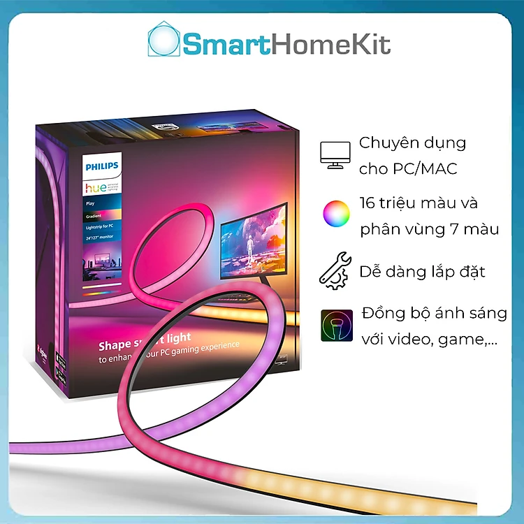 Đèn LED dây thông minh Phillips Hue Play Gradient Lightstrip for PC 16 triệu màu cho máy tính - Hàng Chính Hãng