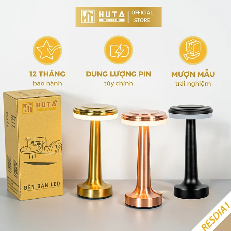 Đèn Led Để Bàn Quầy Bar Nhà Hàng HUTA RESDIA1 Cảm Ứng Tích Điện, Điều Chỉnh Ánh Sáng Vàng, Trang Trí Quán Bar, Nhà Hàng, Quán Cà Phê