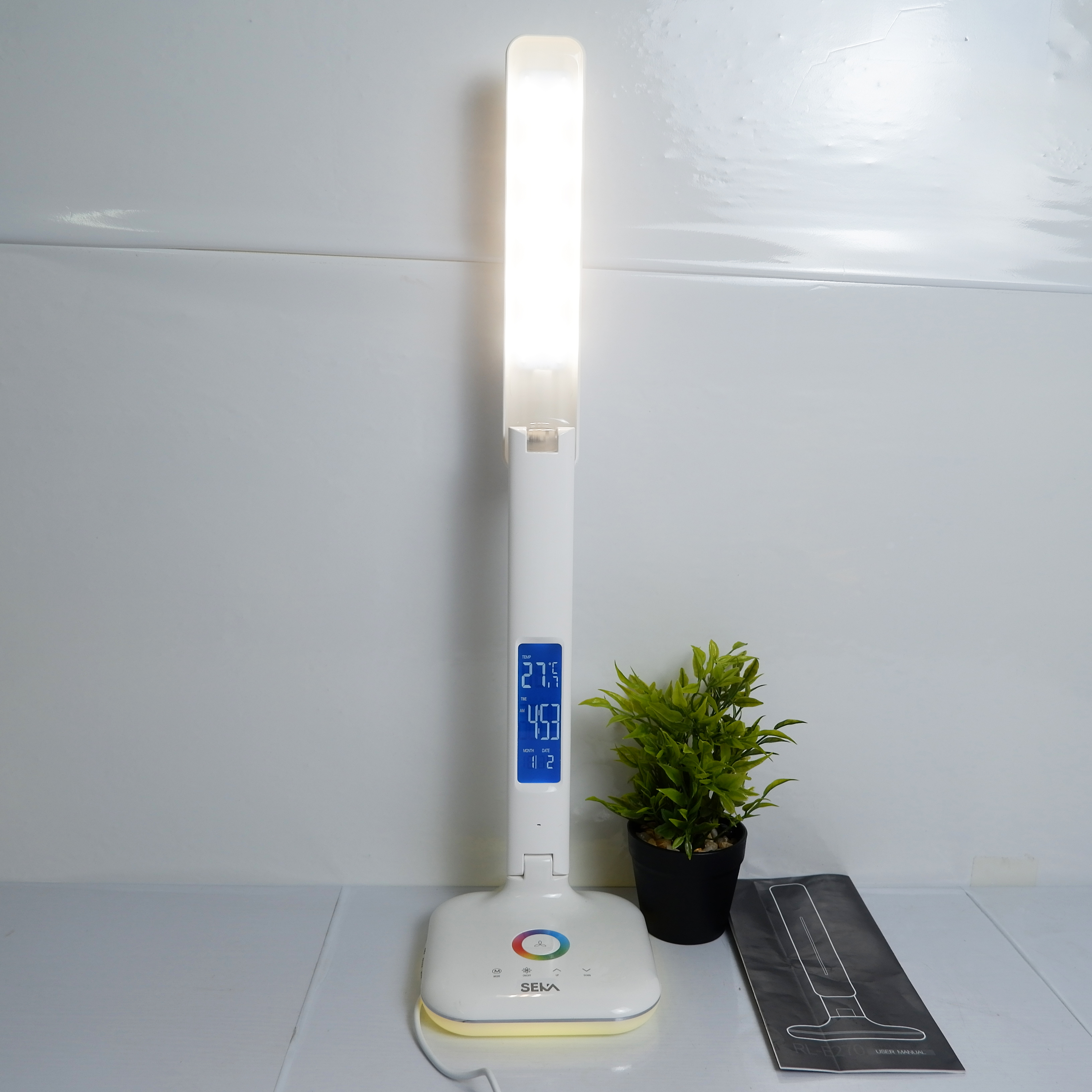 Đèn LED thông minh chống cận H340 không những chú trọng vào thiết kế hiện đại mà còn tích hợp đa chức năng trong cùng 1 sản phẩm. Không giống với những chiếc đèn bàn thông thường chỉ dùng để chiếu sáng, khi sở hữu sản phẩm này, bạn còn có thể theo dõi nhiệt độ, thời gian, ngày tháng ngay trên thân đèn. Chiếc đèn thông minh này còn được cài đặt bộ hẹn giờ ở bên trong để bạn có thể sử dụng làm đồng hồ báo thức mỗi sáng sớm rất tiện lợi.