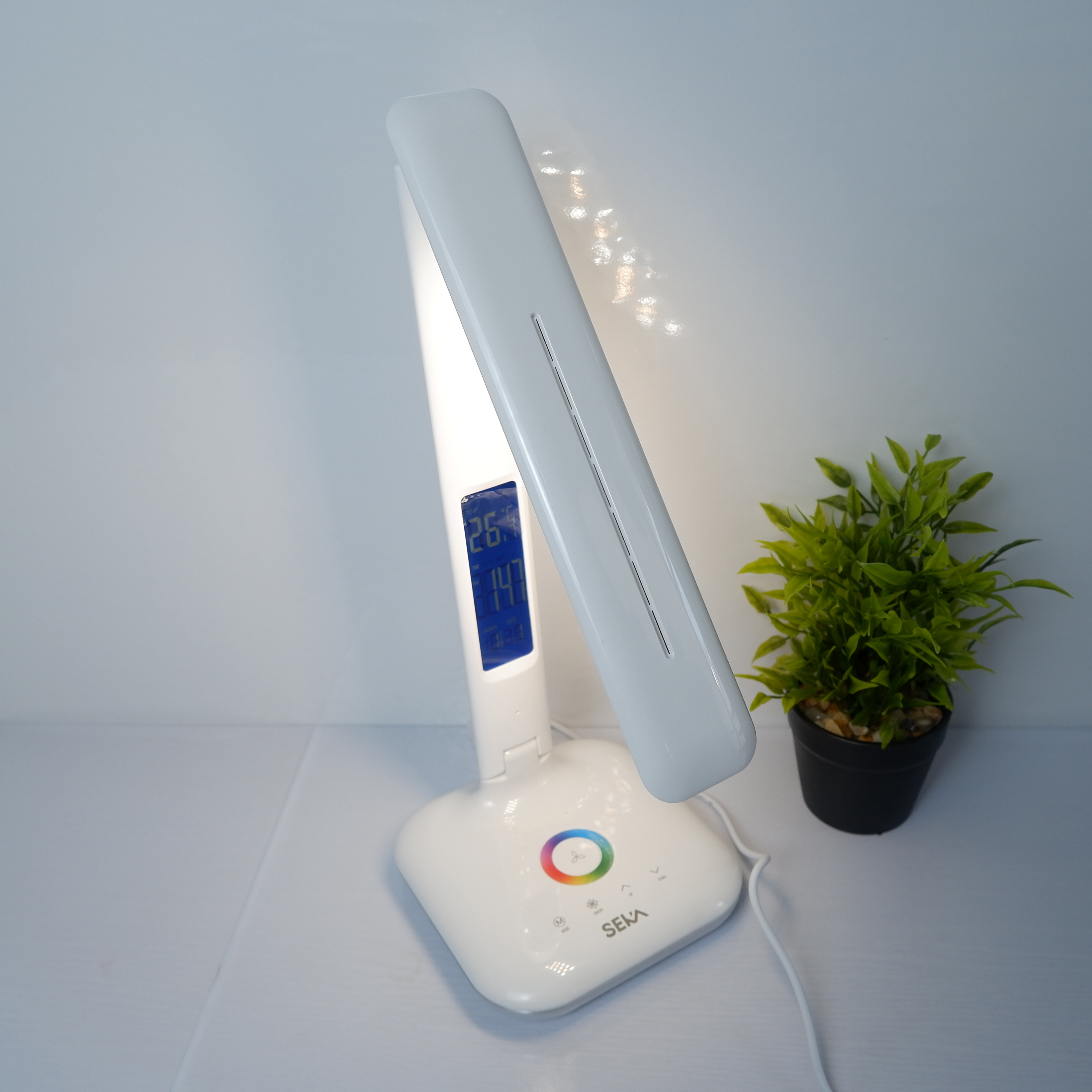 Chân đế tích hợp đèn ngủ với với nhiều sắc, bạn chỉ cần chạm nhẹ vào nút cảm ứng được thiết kế dưới chân đèn để chỉnh màu sắc phù hợp với môi trường. Bạn có thể sử dụng chiếc đèn này để làm việc, đọc sách, soi sáng không gian. Không những thế bạn có thể biến chiếc đèn LED thông minh này thành những chiếc đèn ngủ.