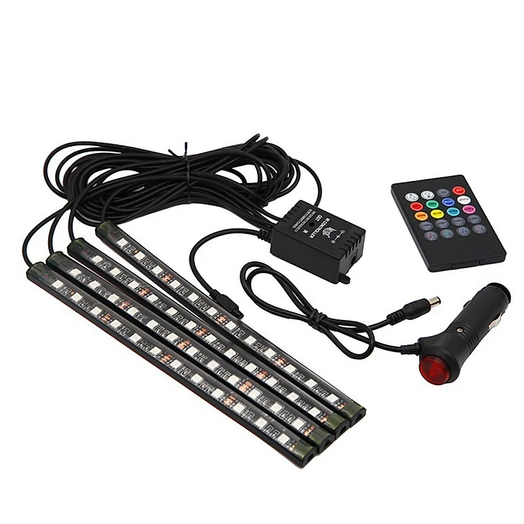 BỘ ĐÈN LED 7 MÀU CẢM ỨNG THEO NHẠC. – Gồm 4 thanh mỗi thanh có 9 bóng led màu. – Cảm ứng theo nhạc, theo giọng nói. – LED có 7 màu: xanh, đỏ, tím, vàng, trắng, hồng, cam – Có thể điều khiển từ xa, chỉnh màu sắc theo 16 chế độ có sẵn, chế độ cảm ứng theo nhạc nữa là 17. – Dây dài phù hợp với nhiều loại xe.