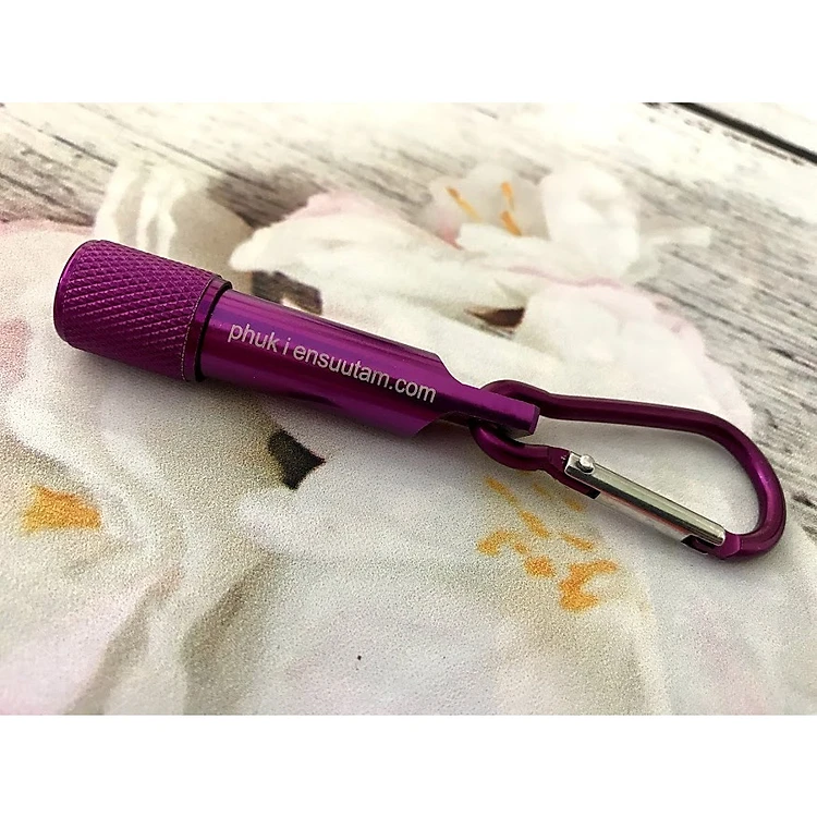 Móc khóa đèn led có 5 màu cho bạn lựa chọn: Tím, Vàng, Bạc, Đỏ, Đen