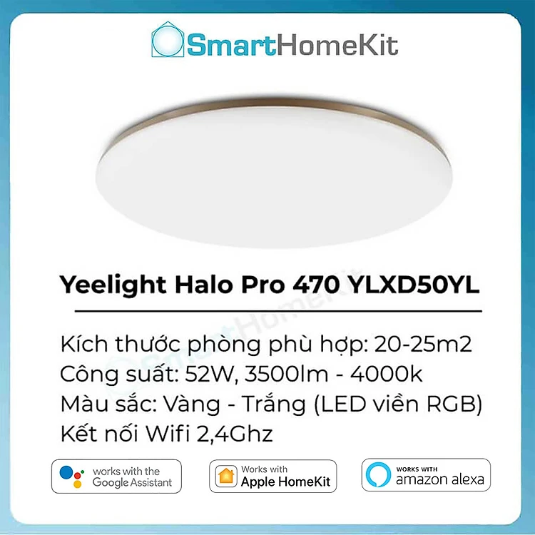 ĐÈN LED ỐP TRẦN THÔNG MINH YEELIGHT HALO 2020, YLXD50YL, 470MM, 52W, RGB, APPLE HOMEKIT - HÀNG CHÍNH HÃNG