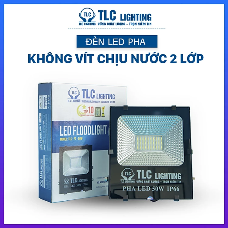 Đèn LED Pha Không Vít Chịu Nước 2 Lớp TLC Lighting công suất 10W, 20W, 30W, 50W - Tiết kiệm điện năng, chống nước, chống bụi bẩn tốt - Ánh sáng ổn định, độ toả nhiệt thấp