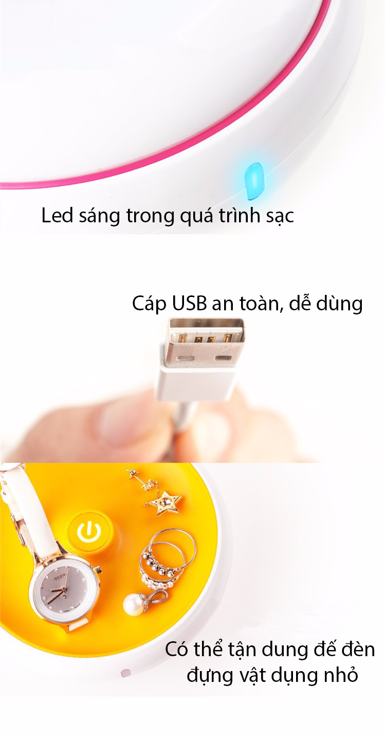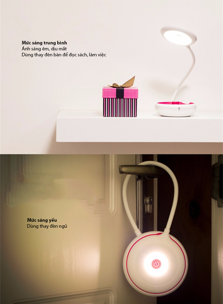 Sử dụng được trong nhiều hoàn cảnh khác nhau: dùng làm đèn bàn làm việc, làm đèn ngủ, làm đèn pin dã ngoại tiện lợi thời trang… kích thước nhỏ gọn có thể dễ dàng đặt lên bàn làm việc hoặc trong balo du lịch.