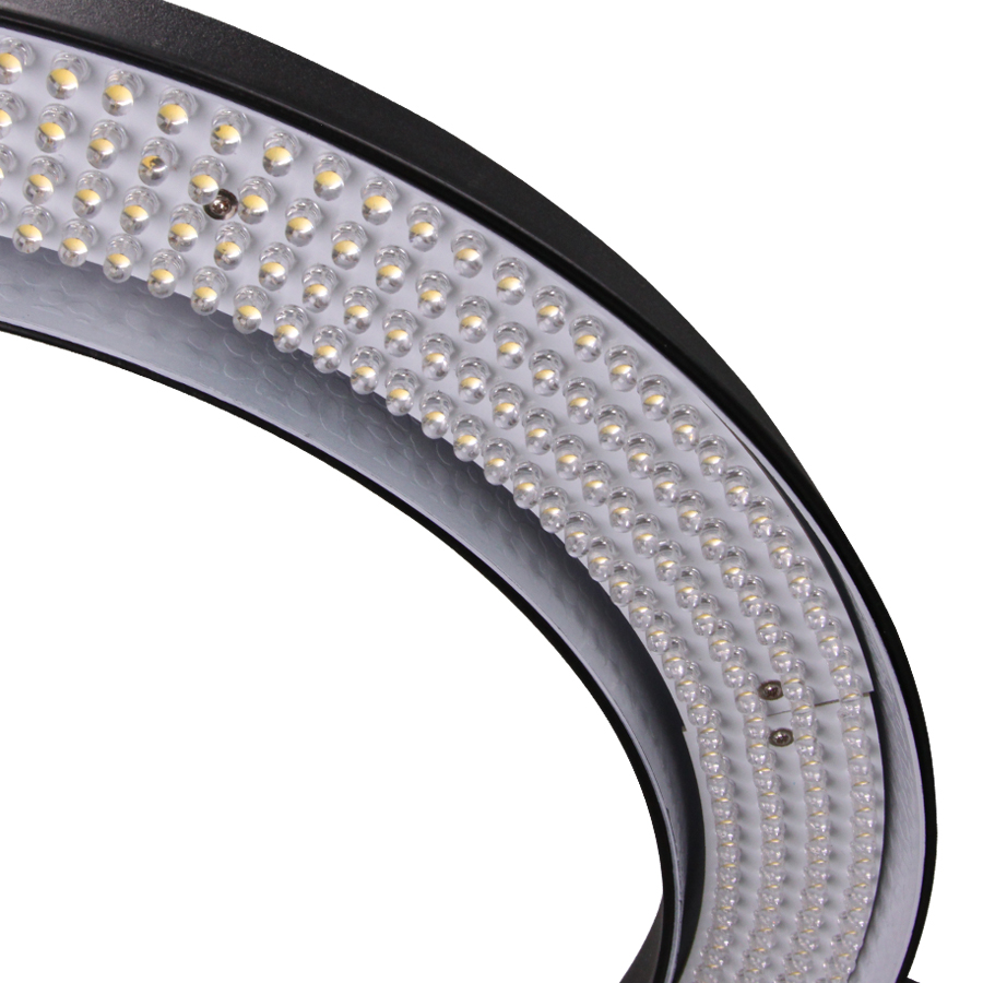 The NanLite Halo 19 LED ring lights is an incredibly versatile light source well-suited for interview lighting, vlogging, live streaming, portrait photography and small product photography. The Halo 19 LED provides an attractive, soft, near-shadowless light quality with interesting, ring-shaped catchlights in the eyes of your subject. With the Halo 19 ring light, you can quickly achieve beautiful, studio-quality results. At 3850 lumens the Halo 19 is powerful enough to be used as a studio light or outdoors while a rear control knob enables you to dial in brightness from 0-100% saving you the trouble of moving it back and forth to achieve the required light intensity. Also, its fixed daylight color temperature (5600K) makes it easily blended in with other studio LED lights and strobe lights. For increased light softness, add the included cloth diffuser to the front of the light.