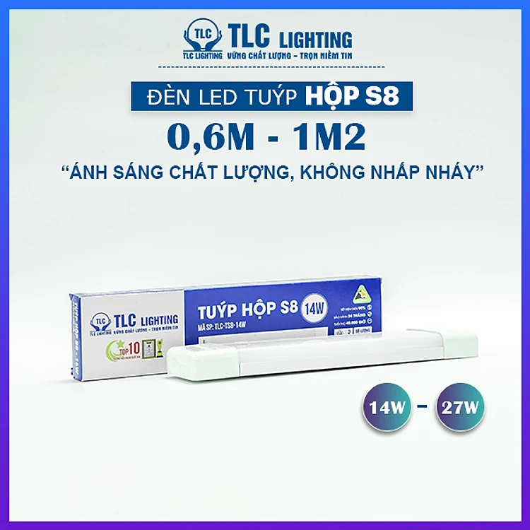 Đèn LED Tuýp Hộp S8 1m2 - 0,6m TLC Lighting 14W, 27W, 54W, 68W - Tiết kiệm điện, không nhấp nháy - Ánh sáng Trắng/Vàng - Hàng chính hãng