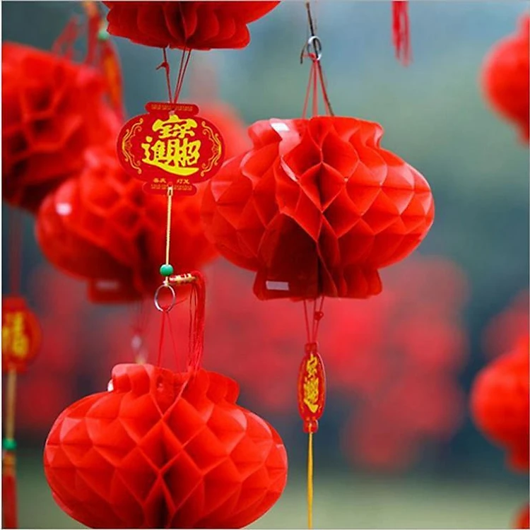 Đèn lồng treo trang trí Tết chữ Phúc tổ ong đỏ size 20cm/30cm/40cm MINMUN1618