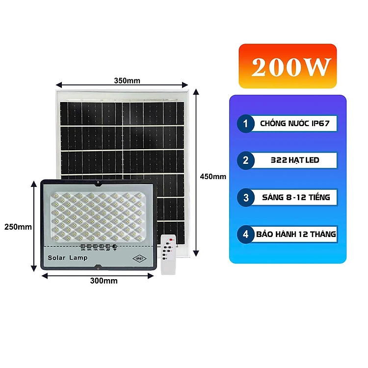 Đèn năng lượng mặt trời chóng chói 50W, 100W, 200W ( vỏ nhựa )
