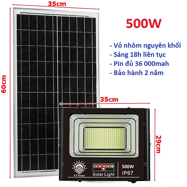 Đèn Năng Lượng Mặt Trời, Đèn Pha Năng Lượng Mặt Trời 500w IP67,Vỏ Nhôm Đúc, Sáng Liên Tục, BH 2 Năm Hàng cao cấp chính hãng