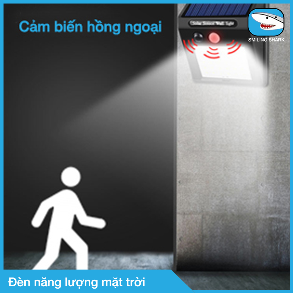 Đèn Led năng lượng mặt trời Smiling Shark thắp sáng sân vườn ngoài trời, gắn cổng, ban công, lan can, lối đi, sân nhà, sân thượng, tự động sạc năng lượng ban ngày, bật tắt theo cảm ứng hồng ngoại khi có người đến gần, chống nước IP65 - Hàng chính hãng