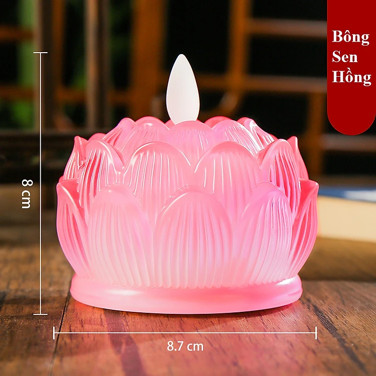 Đèn Nến Điện Tử Hoa Sen Thủy Tinh Nhiều Màu, Dùng Trang Trí Để Ban Thờ Cúng