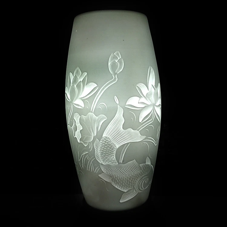 Những đường nét vẽ tay trên chiếc Đèn sứ thấu quang cao cấp cho thấy sự tỉ mỉ và điêu luyện trong nét vẽ của người thợ gốm, từng đường viền, từng chi tiết dù rất nhỏ cũng được công bút rất thận trọng để vẽ như in, nhưng không vì thế mà mất đi nét mềm mại vốn có của sản phẩm vẽ tay. Chất liệu sứ thấu quang với những nét đẹp tinh khôi của xương gốm được chúng tôi chọn để thể hiện những sản phẩm mang nhiều tâm tư và hơi thở của gốm sứ.