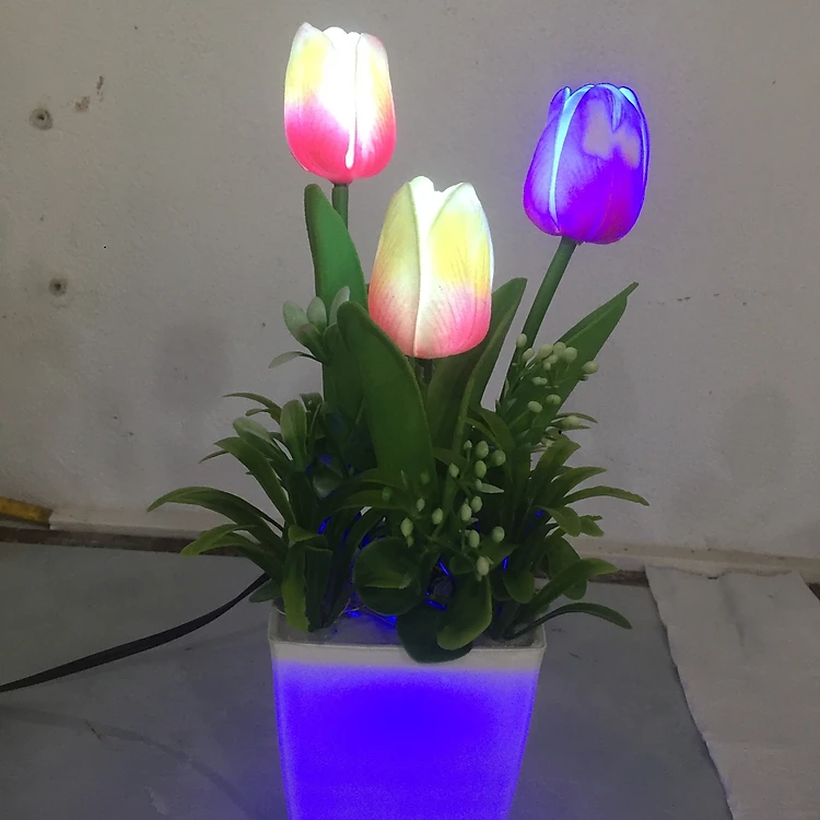 Sản phẩm đèn ngủ hoa tulip PU 3 bông được cắm thủ công nên mỗi sản phẩm sẽ được phối màu hoa ngẫu nhiên phù hợp thẩm mĩ.