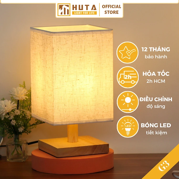 Đèn Ngủ HUTA Light For Life G3 Chao Vuông Độc Đáo Vingtage, Decor Trang Trí Phòng Ngủ, Điều Chỉnh Độ Sáng, Bóng Led Sáng Vàng Tiết Kiệm Điện