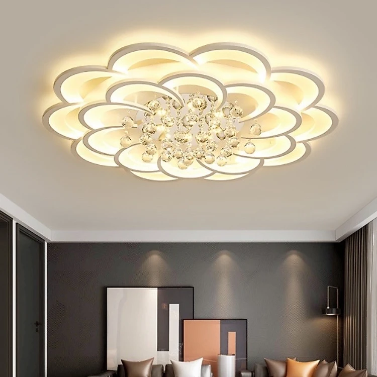 Đèn ốp trần, đèn led mâm ốp trần cánh hoa mai pha lê ( 16 và 20 cánh) 3 chế độ ánh sáng, có điều khiển từ xa