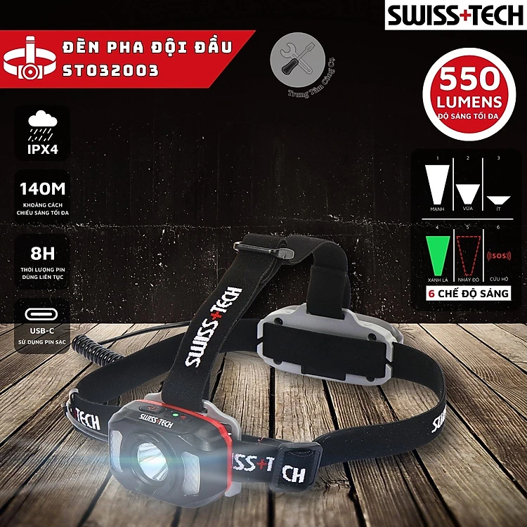 - Độ Sáng Mạnh Mẽ: Với độ sáng lên đến 550 lumen, đèn pha SWISS+TECH mang đến ánh sáng mạnh mẽ, chiếu rõ từng chi tiết trong bóng tối.