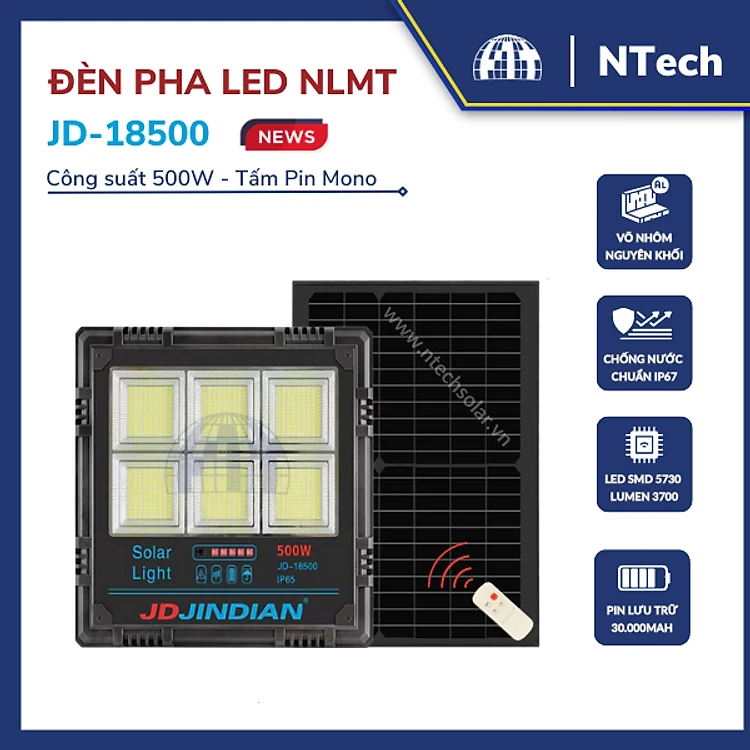 Đèn pha năng lượng mặt trời 500w Jindian JD-18500