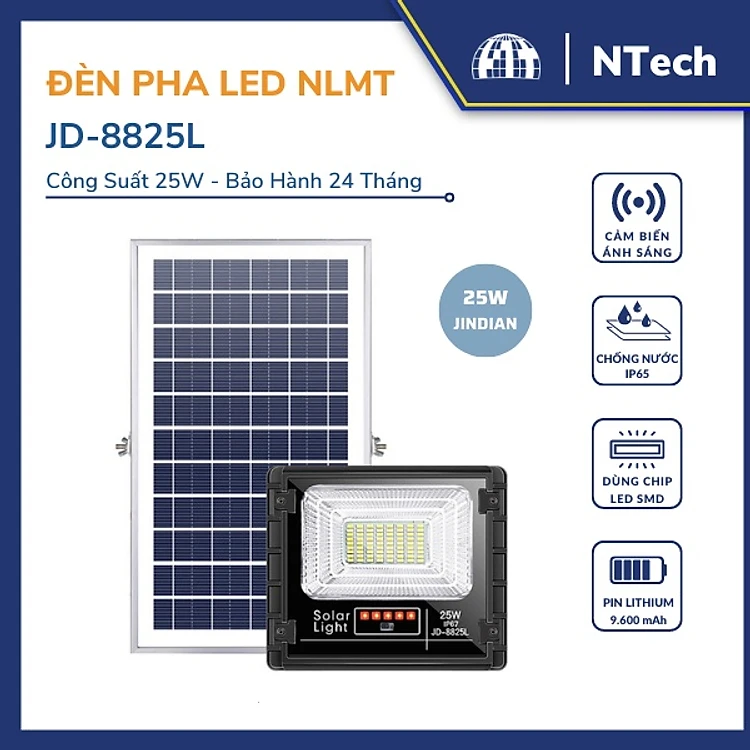 Đèn Pha Năng Lượng Mặt Trời JinDian JD-8825L Công Suất 25W