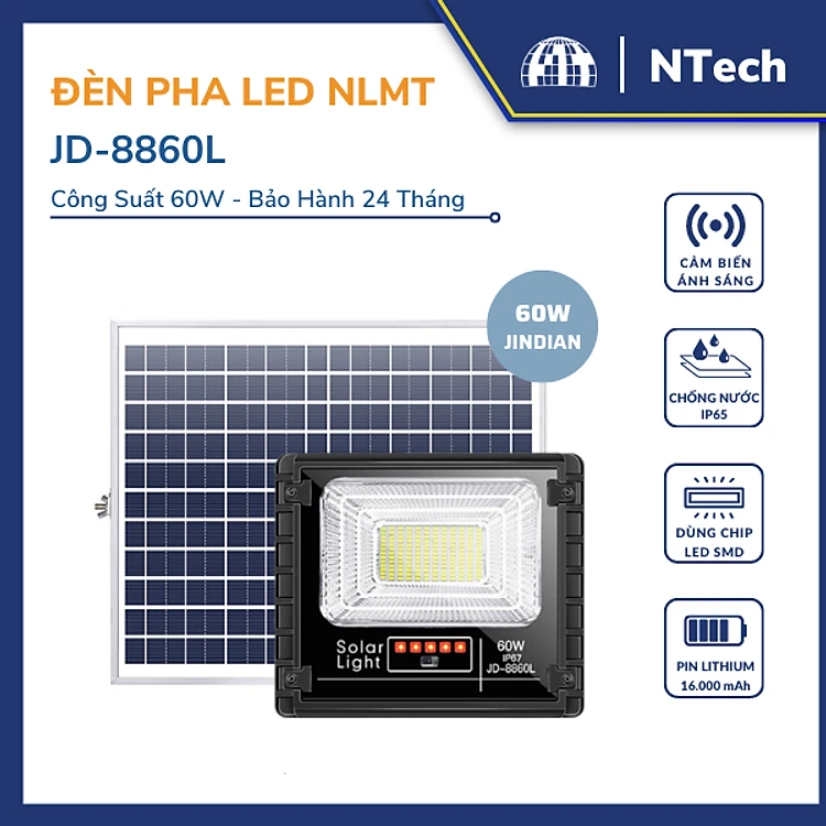 Đèn pha năng lượng mặt trời Jindian JD-8860L Công suất 60W