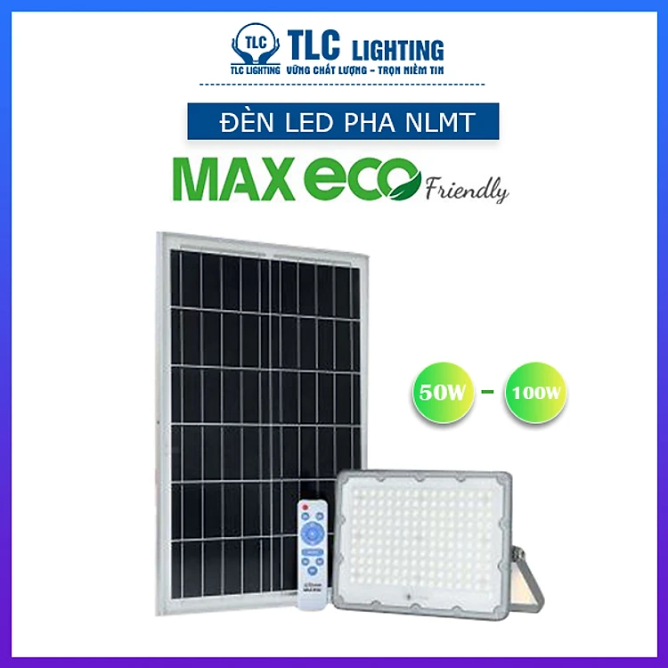 Đèn pha năng lượng mặt trời MAX ECO Friendly công suất 50W, 100W TLC Lighting - Tiêu chuẩn IP66 chống nước, kháng bụi - Dung lượng PIN lên đến 25.000mAh - Chiếu sáng 12h liên tục