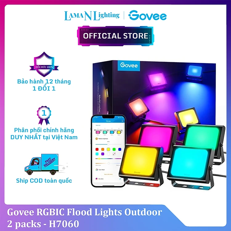 Đèn rọi chiếu sáng cây cảnh, trang trí sân vườn tiểu cảnh ngoài trời Govee RGBIC Flood Lights Outdoor H7060