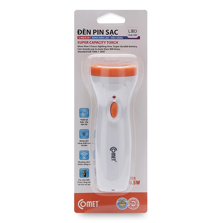 • Thiết kế nhỏ gọn, dễ dàng cầm nắm, đèn pin sạc LED Comet CM8528 thích hợp sử dụng ở những lúc mất điện, những nơi thiếu ánh sáng hoặc mang theo khi đi du lịch, dã ngoại, leo núi...