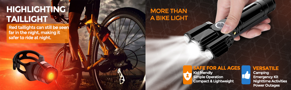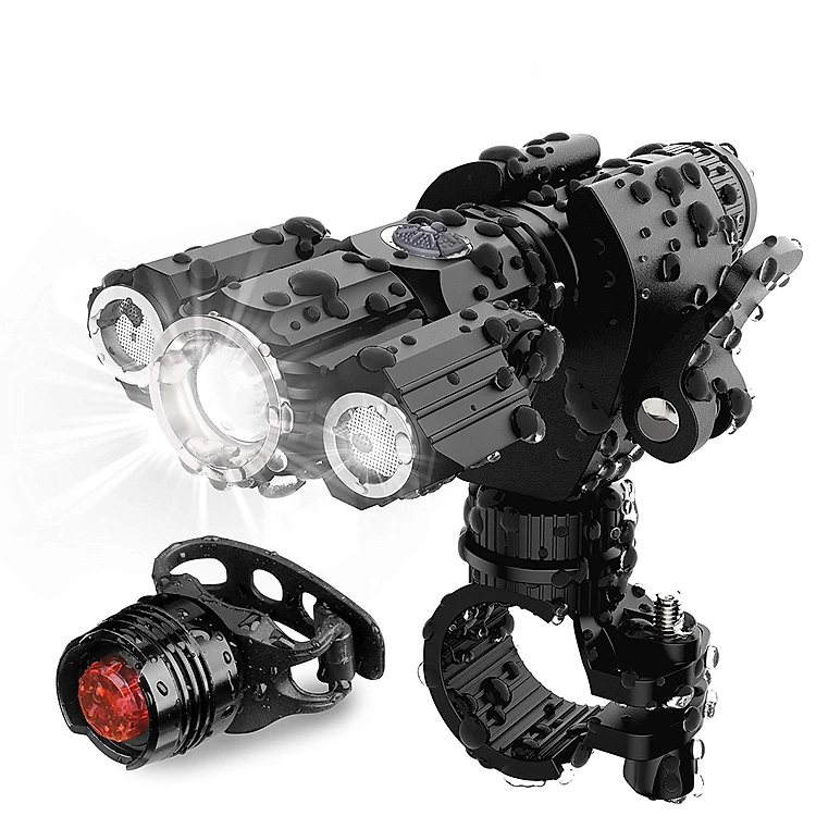 Combo Đèn pin xe đạp 3 bóng chống nước cao cấp (Xoay 360 độ) + đèn hậu xe đạp