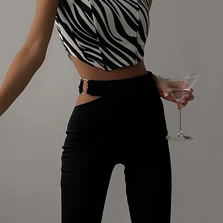 Đen Rỗng Ra Loe Quần Nữ Y2k Cao Cấp Dạo Phố Quần Ống Rộng Nữ Đáy Hàn Quốc Hip Hop Pantalones de Mujer