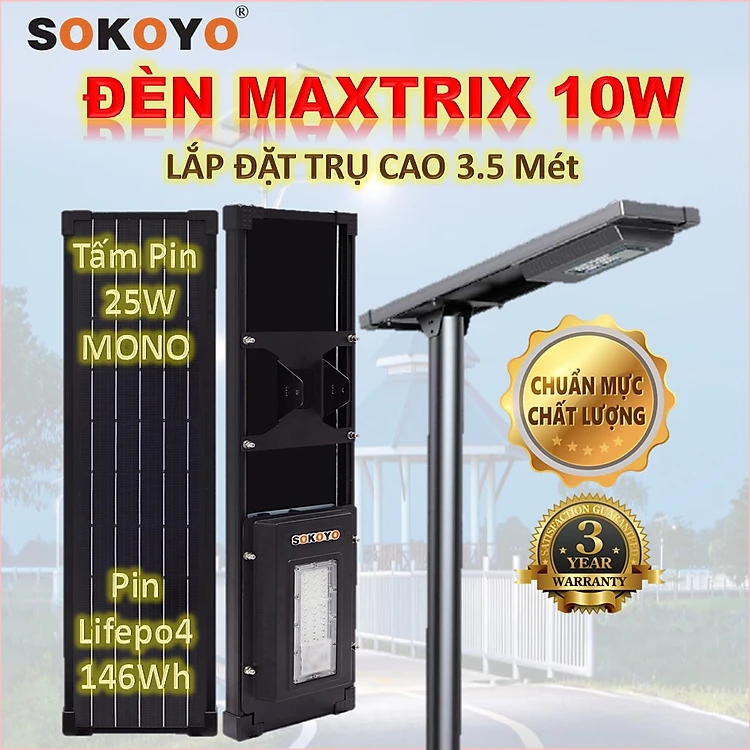 ĐÈN SOKOYO - MAXTRIX 10W - DIỆN TÍCH SÁNG 35 Mét Vuông - TRỤ CAO 3.5 MÉT - ĐÈN NĂNG LƯỢNG MẶT TRỜI